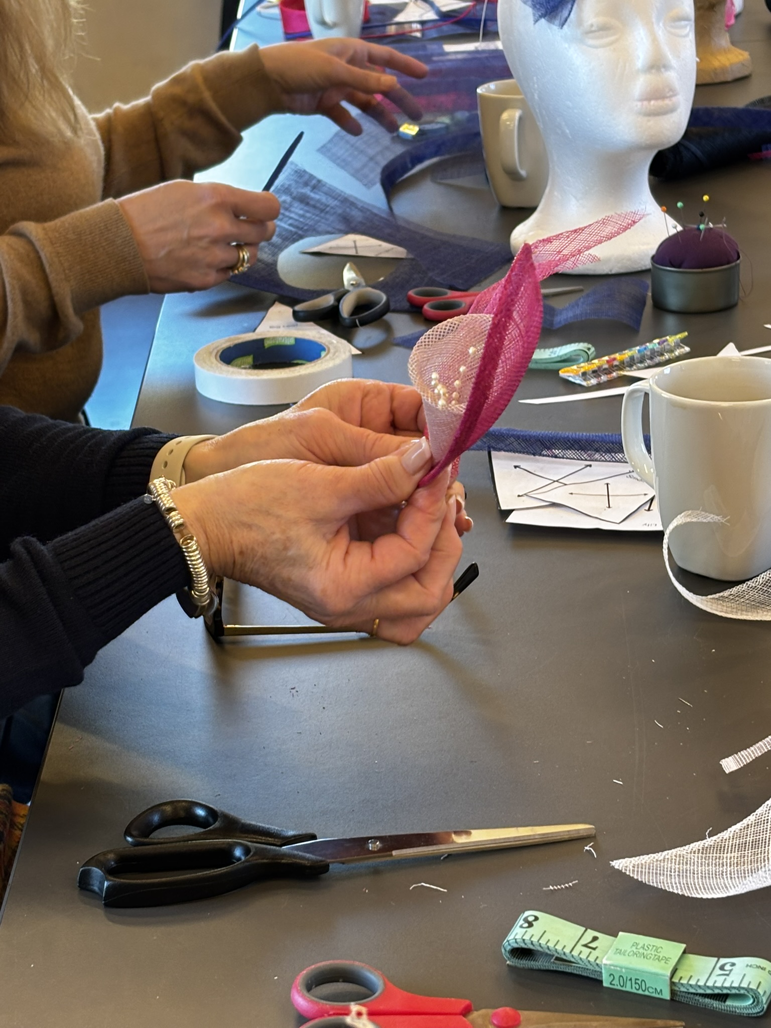 Make a sinamay fascinator in March ! Spend 21/2 hours learning to shape and craft your very own fascinator .